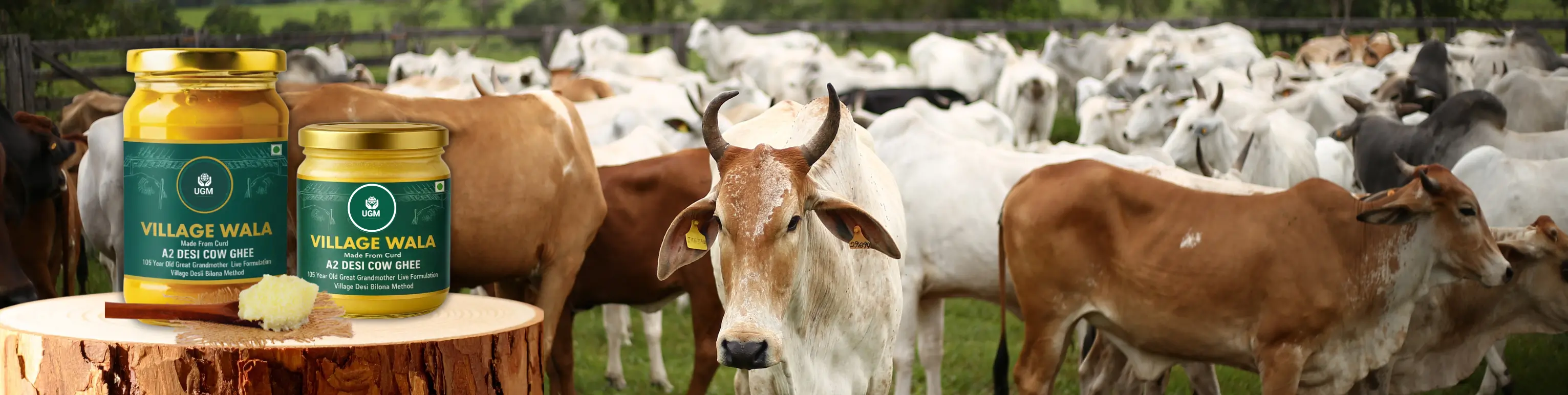 At UGM Store, we believe in staying true to our roots. This image captures our commitment to natural farming practices, where healthy cows, green fodder, and ethical care come together to produce the purest