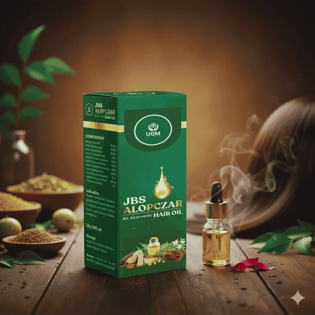 JBS Alopczar Ayurvedic Hair Oil is a premium blend of 100% natural herbs and oils designed to nourish your scalp and restore healthy, strong hair. Crafted using ancient Ayurvedic wisdom, this oil is packed with potent ingredients like Bhringraj, Mehdi, Brahmi, Neem, Chandan, Jatamansi, and Laung Oil, all carefully chosen for their proven benefits in preventing hair fall, dandruff, and premature graying.
